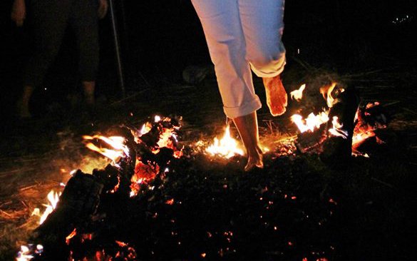 Beim Feuerlaufen hast du die Gelegenheit, barfuss ganz und heil über glühende Holzkohle zu laufen und zu tanzen.
